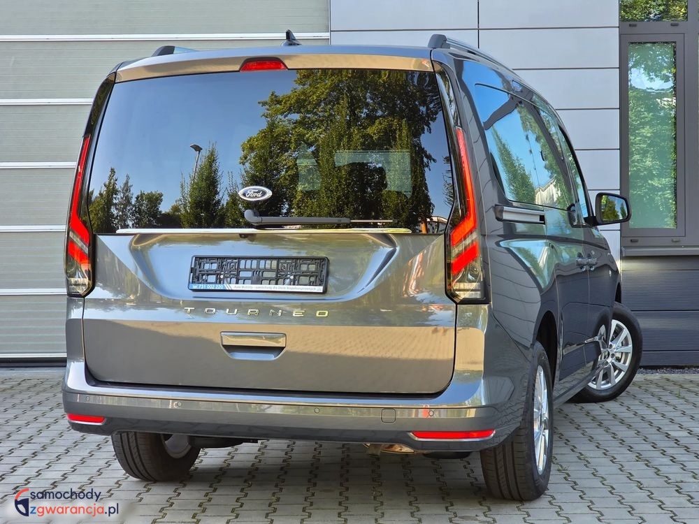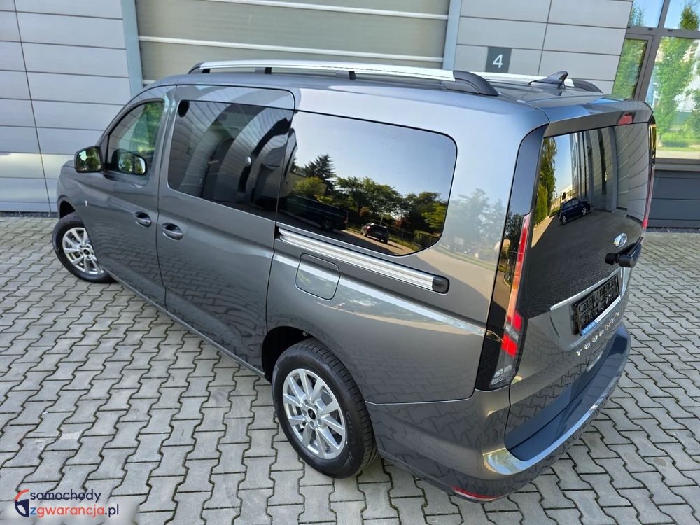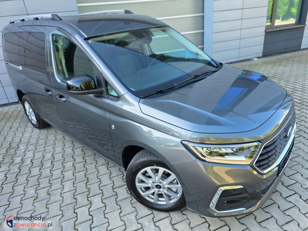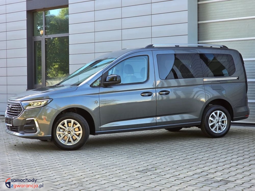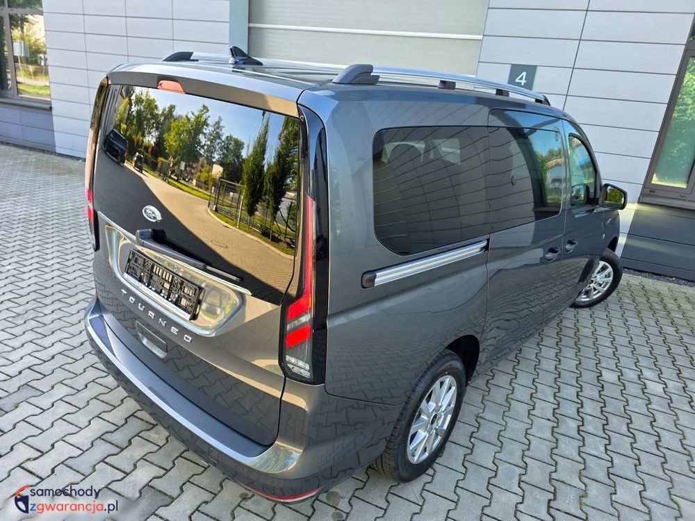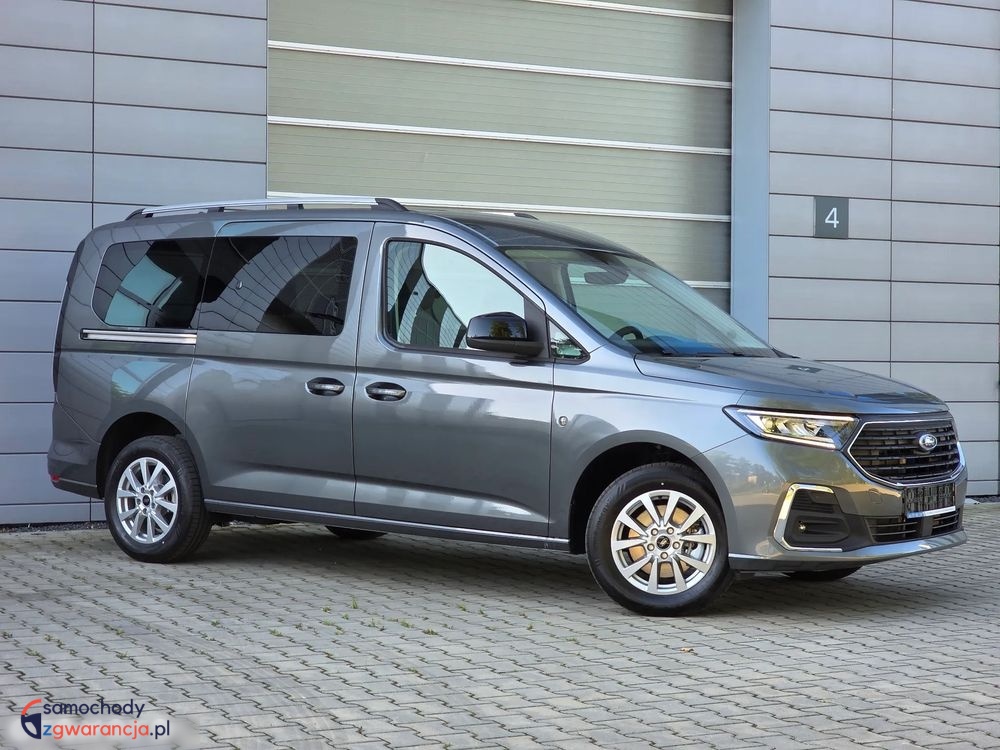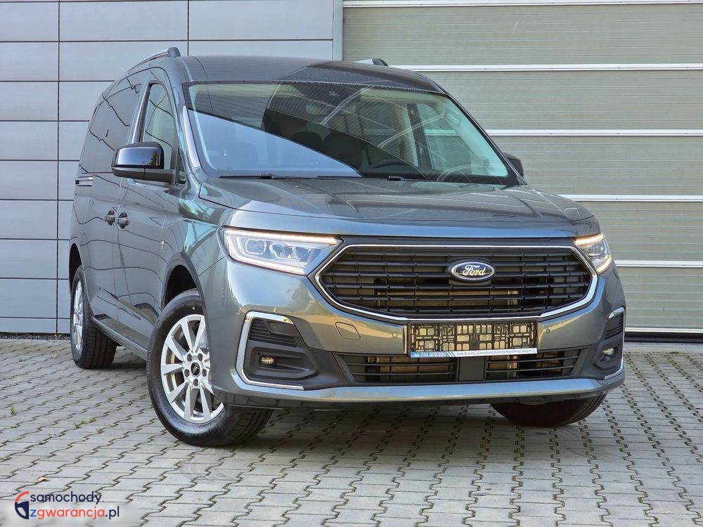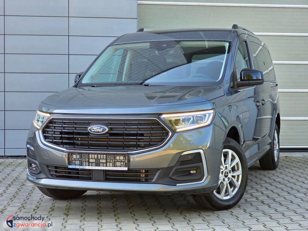 Ford Grand Tourneo Connect Titanium z silnikiem 1.5 Ecoboost o mocy 114KM i manualna, sześciobiegową skrzynią biegów. Samochód fabrycznie nowy. Bogata wersja wyposażenia Titanium, posiada m.in. światła full LED z przodu i z tyłu, kamerę i czujniki parkowania, tempomat, system bezkluczykowy, felgi aluminiowe, pogrzewane fotele i podgrzewaną przednią szybę oraz wiele innych dodatków