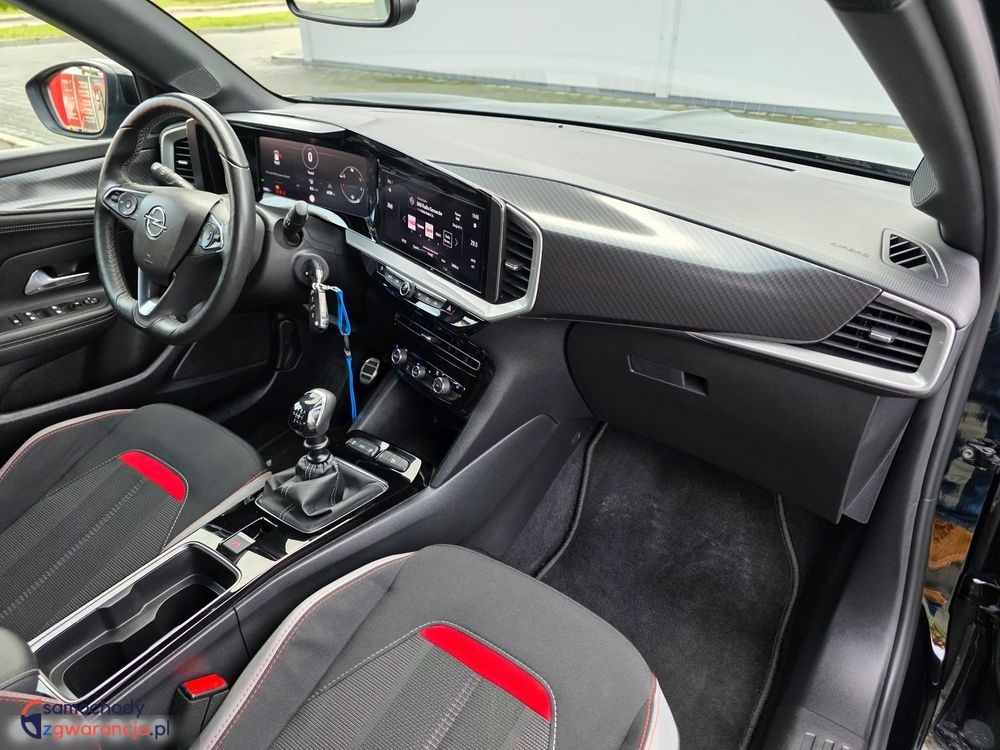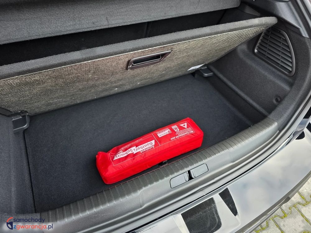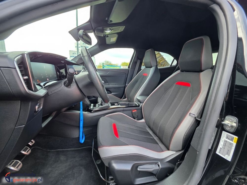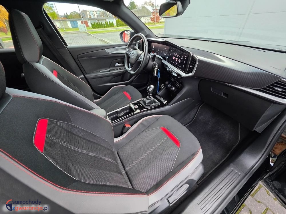 Bogata wersja wyposażenia GS, posiada m.in. światła full LED, nawigację, system multimedialny z Car Play i Andorid Auto, podgrzewane fotele, podgrzewaną kierownicę, klimatyzację automatyczną dwustrefową, tempomat, kamerę cofania, czujniki parkowania przód i tył oraz wiele innych dodatków. Samochód bardzo atrakcyjny wizualnie, czarny lakier połączony jest z czerwonymi dodatkami, podoba kolorystyka znajduje się wewnątrz.