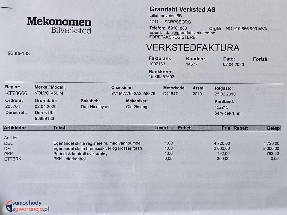 Szczegóły samochodu